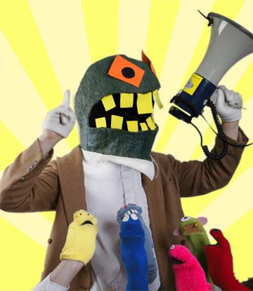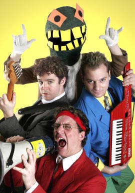 Uncle Monsterface is Marty Allen yelling and jumping about, (Paradise) Dan Brennan playing rock guitar, and (Perfect) Jimmy Bernardinelli on the keytar. Uncle Monsterface also: is a small green puppet with big yellow teeth; is the giant life-sized version of the little green puppet come to life to solve the rest of the band's problems; is songs about mutant prairie dogs; is a web-based Television Variety show; is thirty sock puppets singing and dancing inside a colorful box; is the notorious opening act for book rockers Harry and the Potters; is a megaphone thrust into the air; is three grown men wearing bed sheets and calling them capes; is the audience invited onto the stage to rock out with them at the end of every set. Uncle Monsterface is all these things and quite possibly several others as well... |